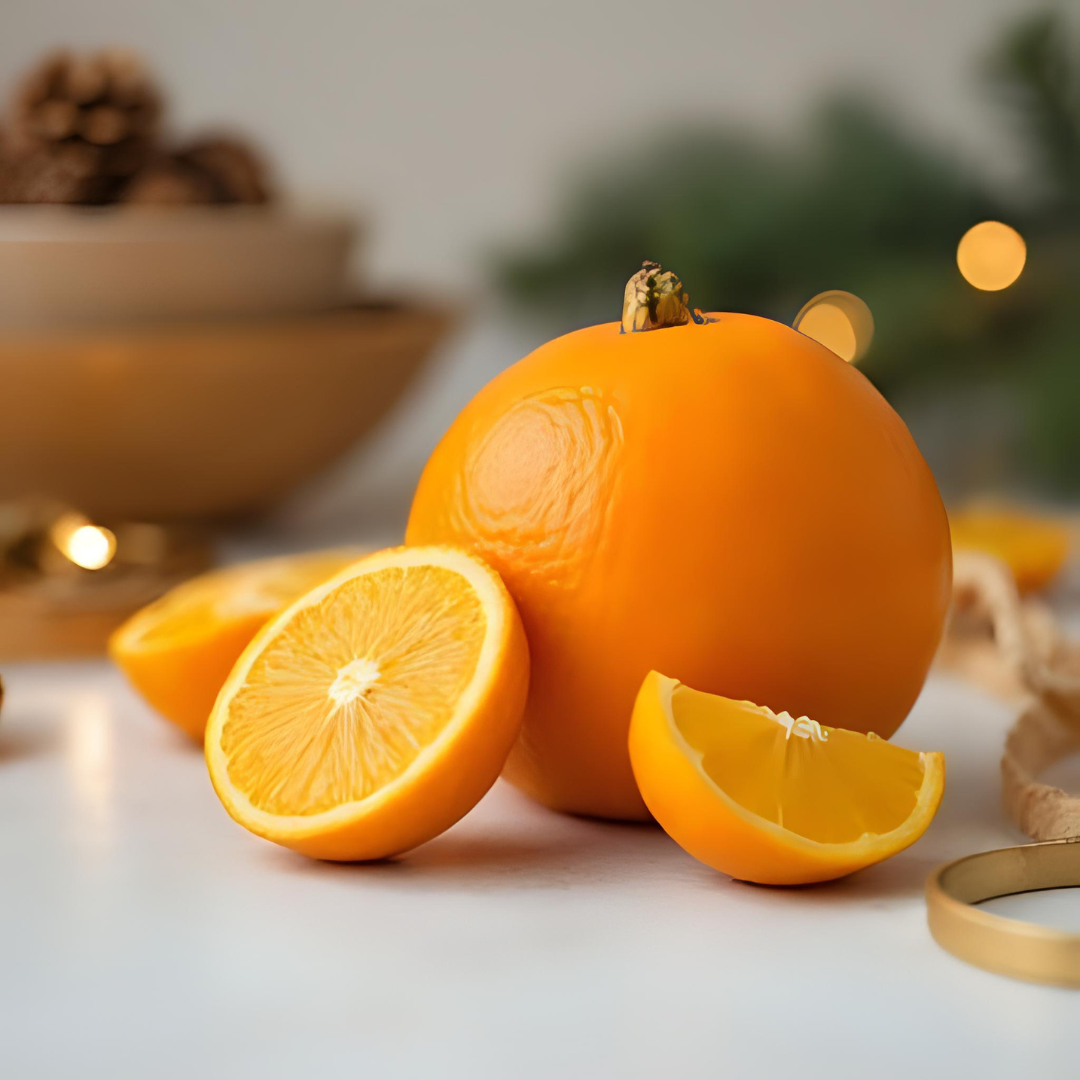 Le fondant parfumé Orange Confite associe la fraîcheur pétillante du pamplemousse et de l’orange à la douceur de la vanille. Ce parfum chaleureux et sucré évoque les confiseries de Noël et les moments partagés au coin du feu.